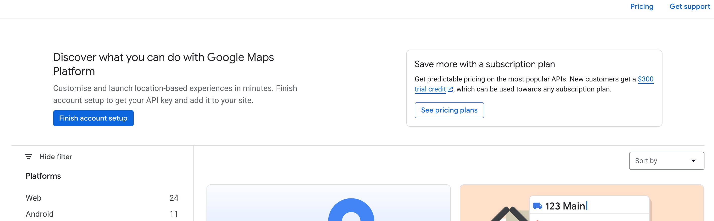 1. Go to https://mapsplatform.google.com/ and scroll down the page until you get to Grow your business with Google maps platform and click ‘Get Started'